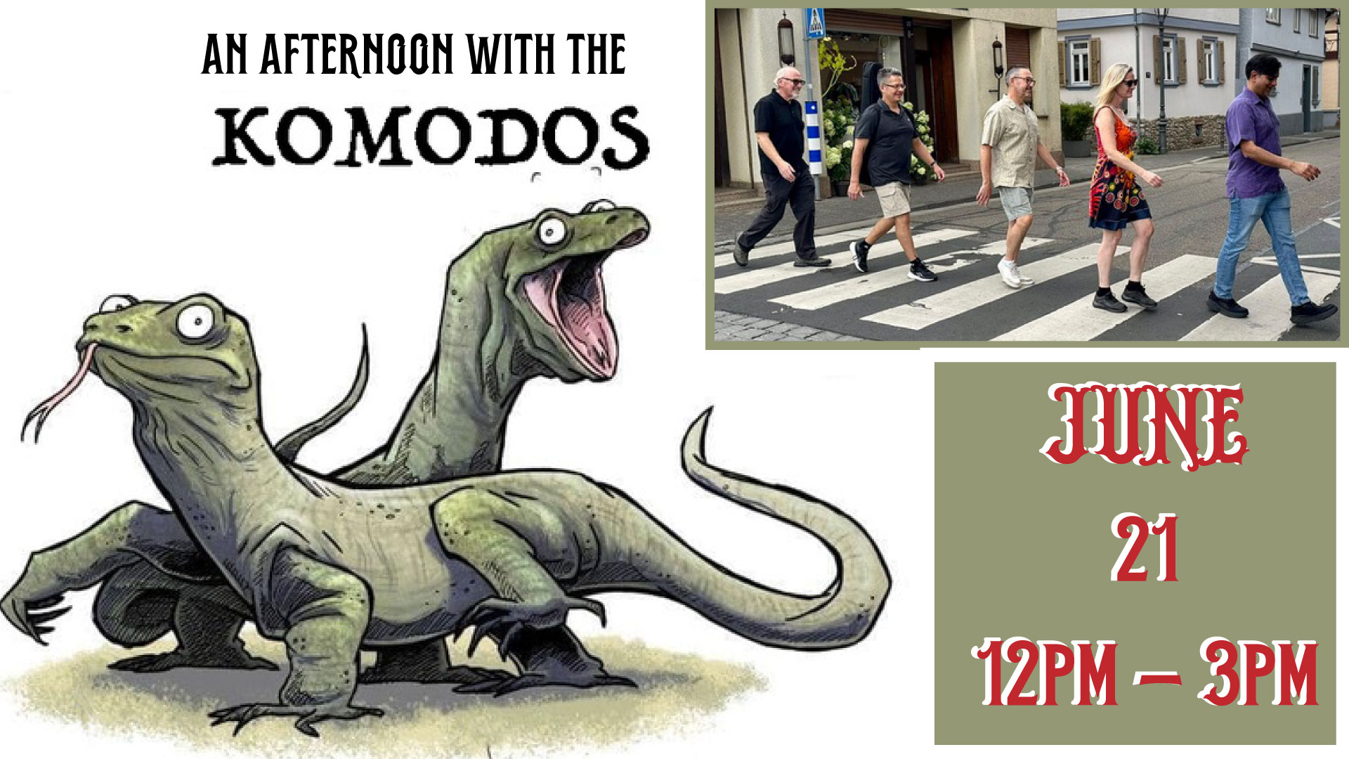 The Komodos are Bob, Mike, Tracy, Frank, and Sanjaya playing your favorite music; Rock, Americana, Roots, Pop, and more.